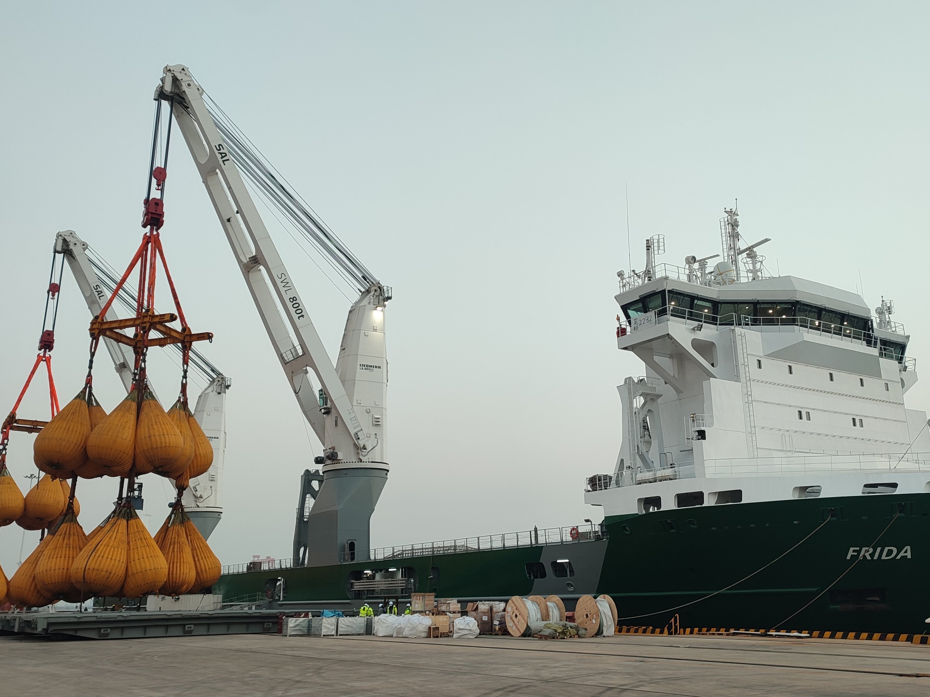 Last week, MV Frida successfully completed a 1,600-tonne tandem lift test, confirming the full lifting capability of SAL’s new Orca Class vessel. During the test, both cranes lifted 800 tonnes each using water-filled test bags at maximum possible outreach on the starboard side.